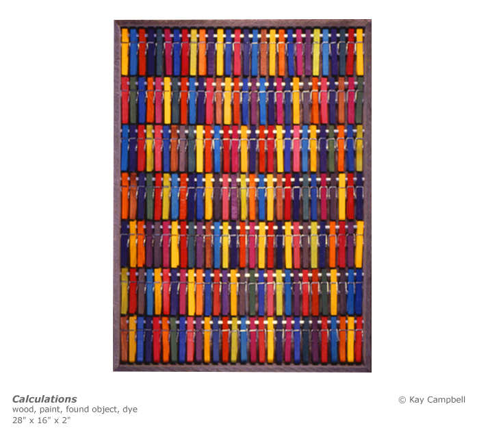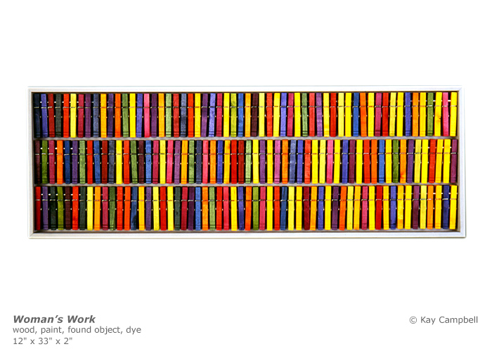 In these works I have elevated the status of a simple found object that when combined, creates a larger context of color, pattern and meaning.